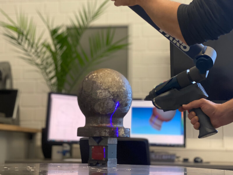 Zwei Mess-Arme mit variablen 360° Gelenken erreichen jeden Messpunkt an den Bauteilen zur Bestimmung der metrischen Anforderungen. Auch berührungsloses Messen mittels Laserscan und die daraus resultierende Flächenrückführung ist problemlos möglich.