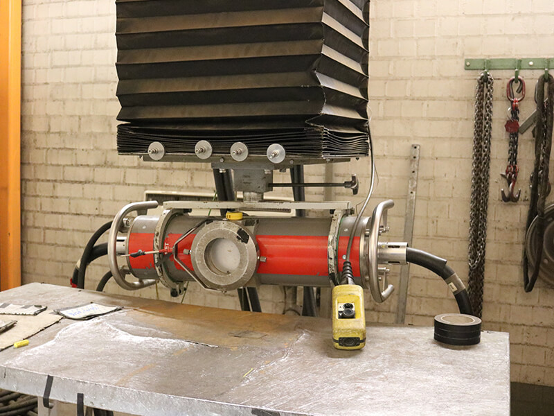 Die 450kV – Elektronenstrahlröhre durchstrahlt Gussteile in kürzester Zeit. Aufgehängt in einem 3-Achs-Manipulator, werden auch bei sperrigen Teilen die passenden Prüfwinkel exakt eingestellt. Die vollautomatische Entwicklung rundet diese Prüfdisziplin zur zuverlässigen Volumenfehlerbestimmung ab.