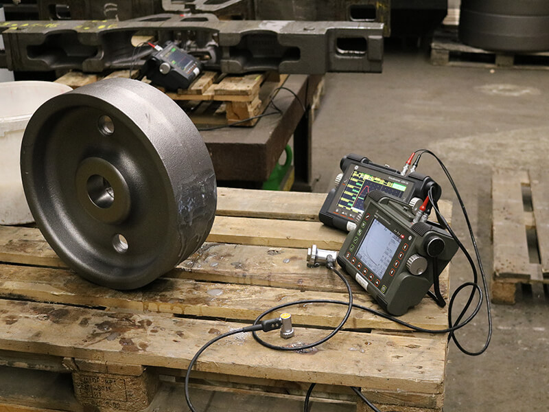 Zur Erfüllung der Anforderungen an die Erkennung von Volumenfehlern stehen unter anderem mehrere moderne Ultraschallprüfgeräte zur Verfügung. Eine breite Auswahl an verschiedensten Prüfköpfen sichert die Bewältigung aller Prüfaufgaben ab.